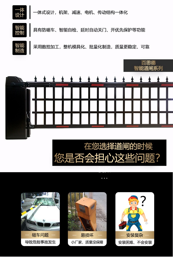 對(duì)于廣告道閘大家心里應(yīng)該都清楚是什么,在現(xiàn)在廣告道閘處于智能通道設(shè)備里面的香餑餑,搶手的很,各式各樣的廣告道閘都有,但真正的、會(huì)做廣告道閘的廠家卻沒有幾家?當(dāng)然我不是說(shuō)其他的都不會(huì)做,而是或多或少有這樣那樣的問(wèn)題存在。但我們百思德的廣告道閘,我可以很自信的說(shuō)是真心不錯(cuò),通過(guò)這么多年的摸爬滾打,對(duì)于廣告道閘的認(rèn)識(shí)有了新一步的提升,雖然不是最好的但朝著最好為目標(biāo)在努力奮斗著。